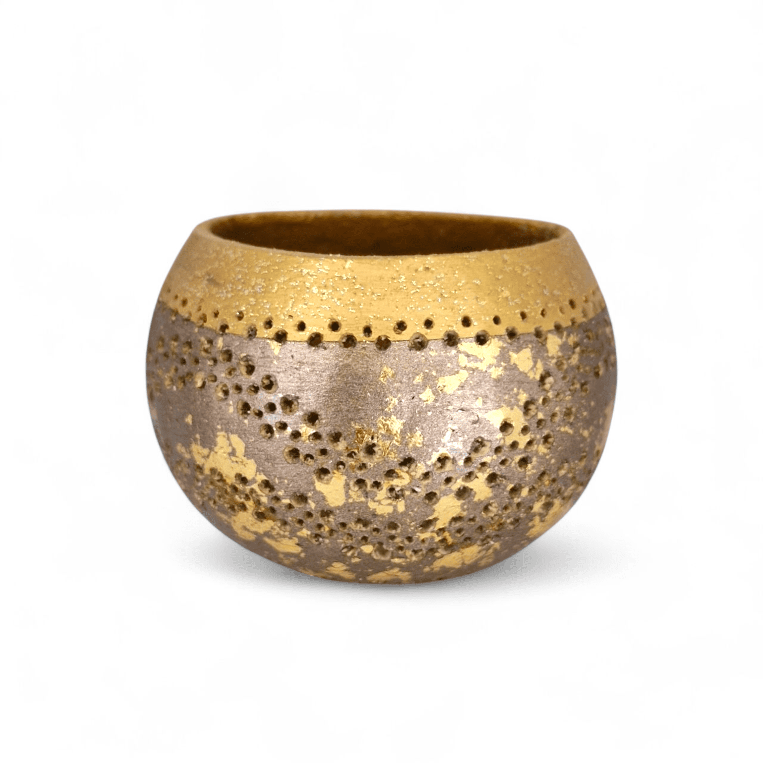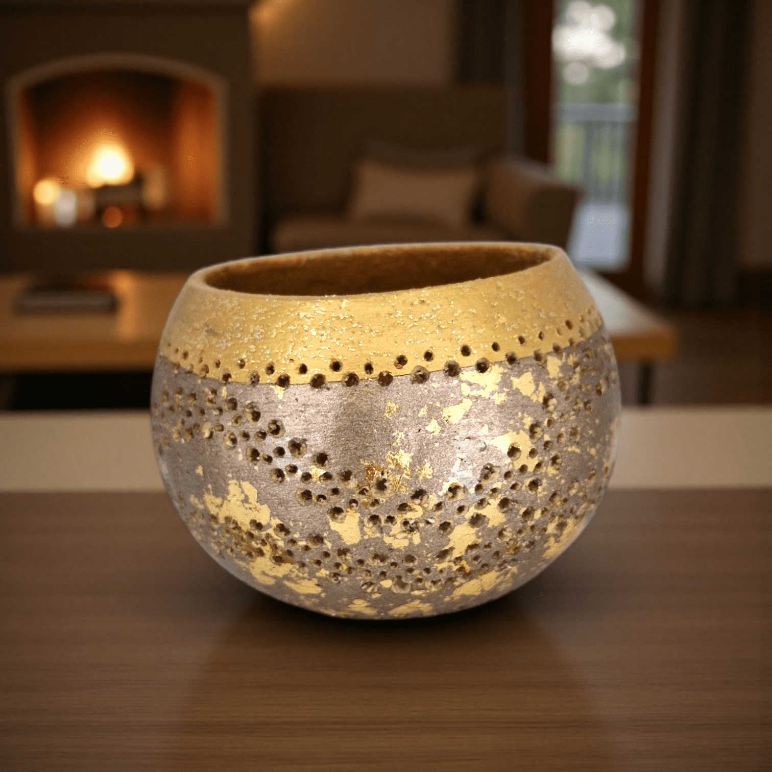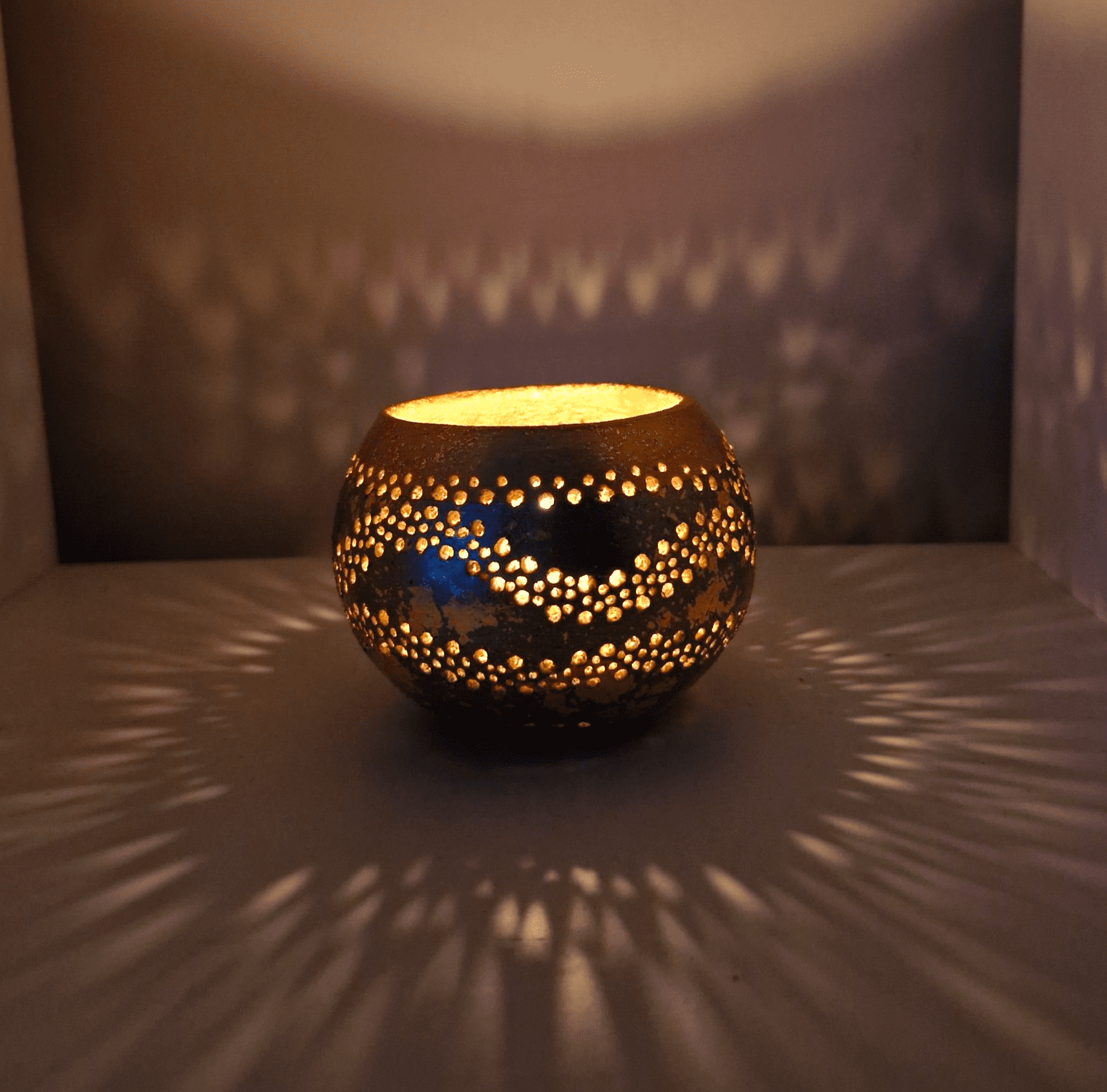Les trous, percés un par un à l'aide d'une perceuse de précision, permettent à la lumière de la bougie de créer une ambiance douce et onirique.