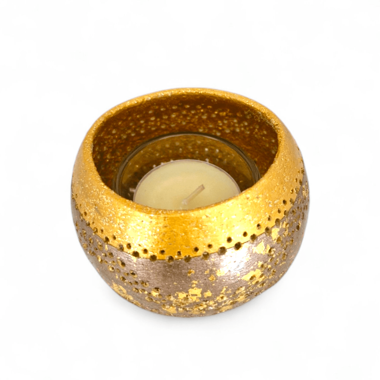 Un support en verre et une bougie chauffe-plat sont offerts avec le photophore.