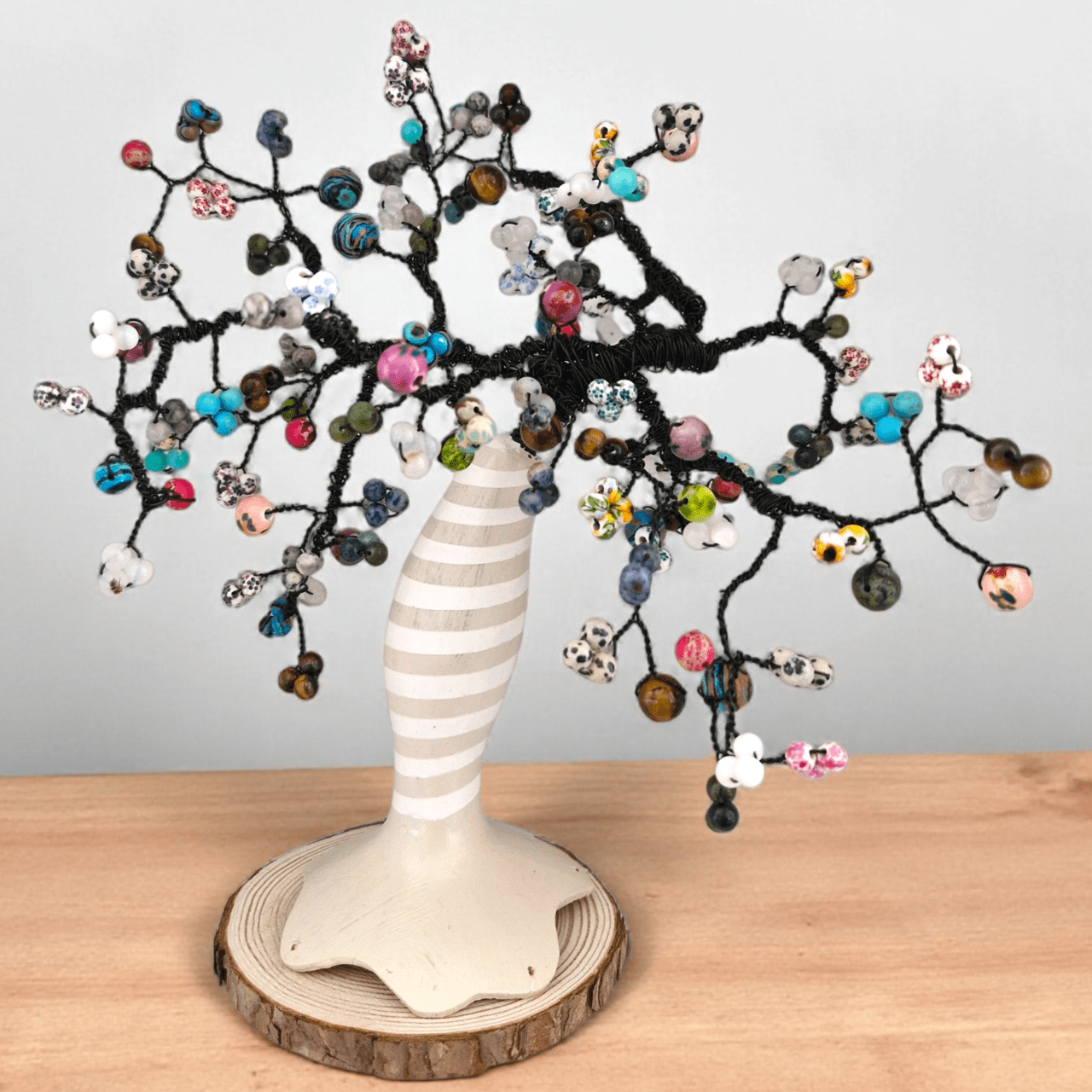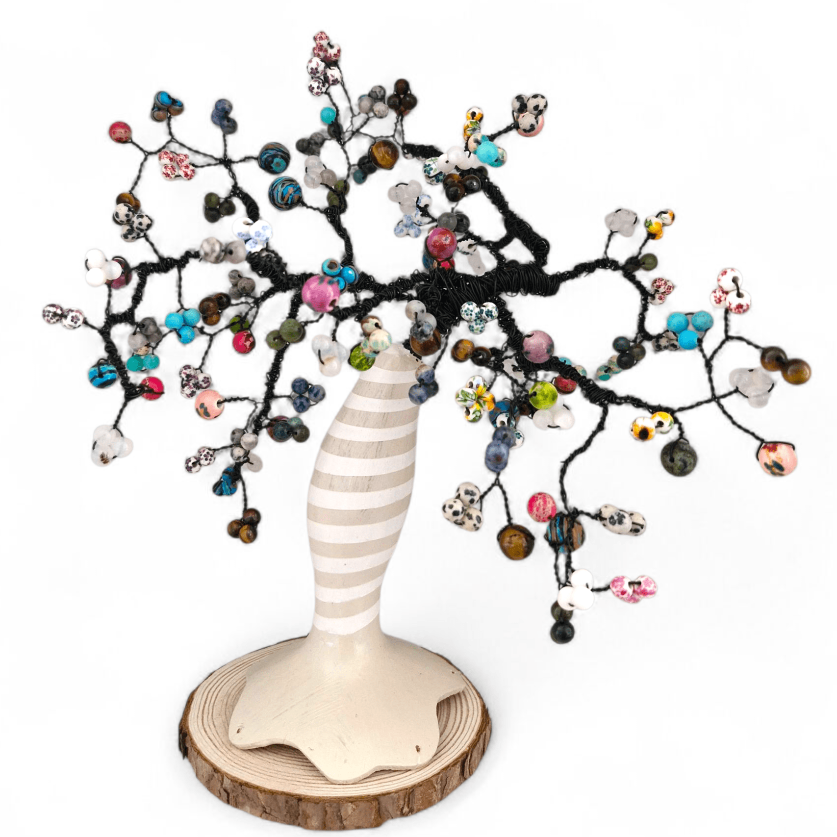 - Fleurs en perles (mélange de perles naturelles + perles en céramique)