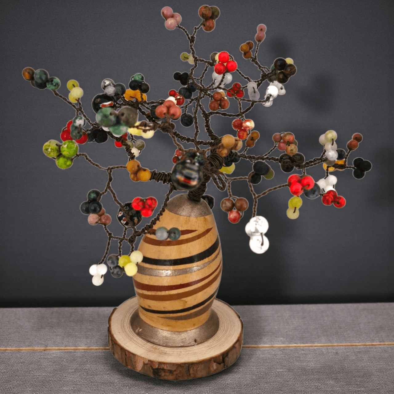 - Fleurs en perles (mélange de perles naturelles + perles en céramique)