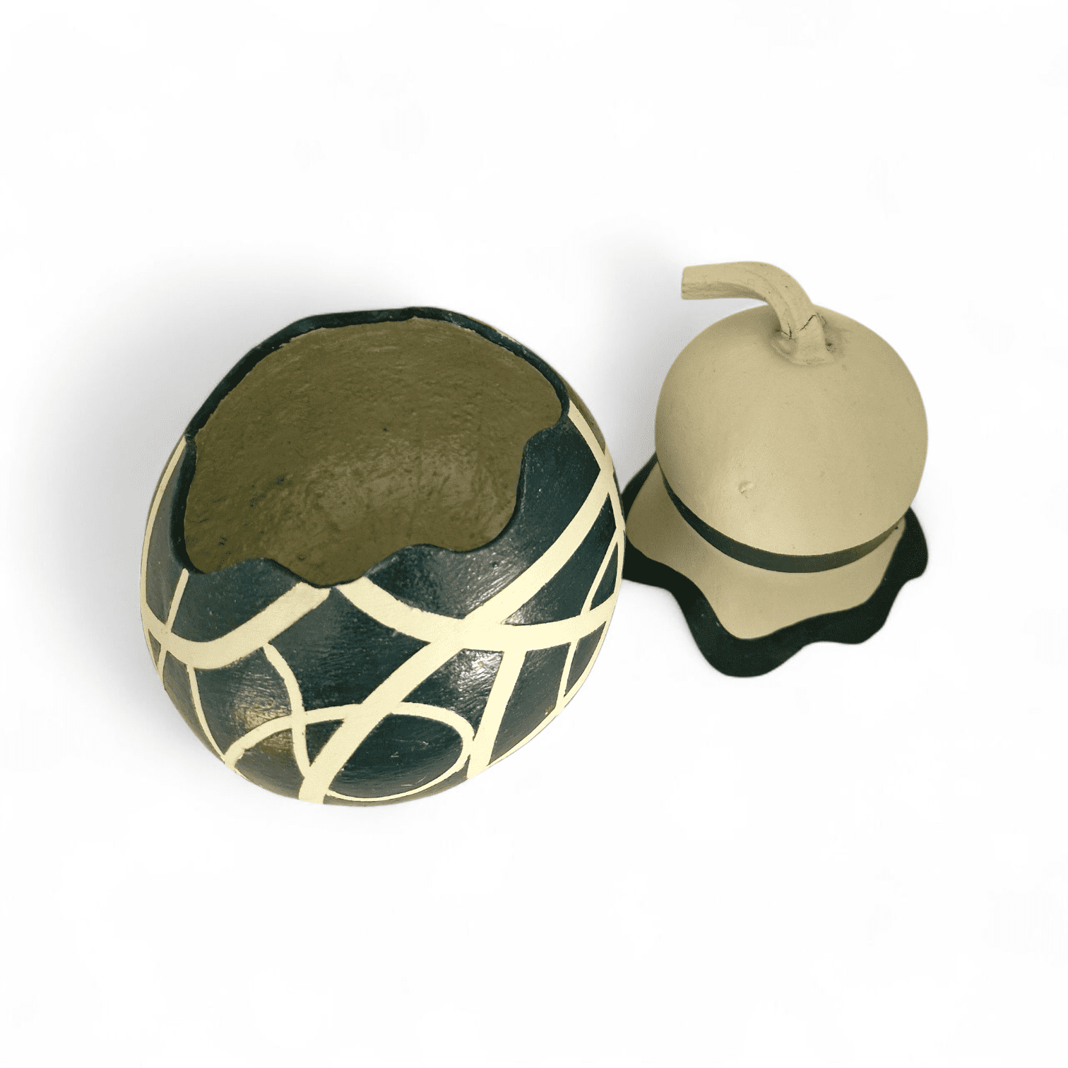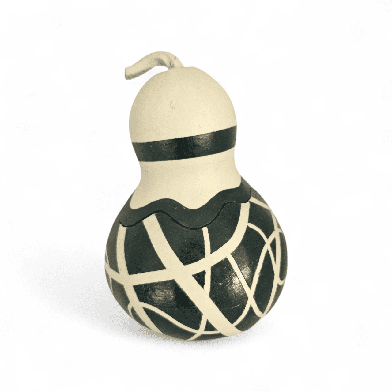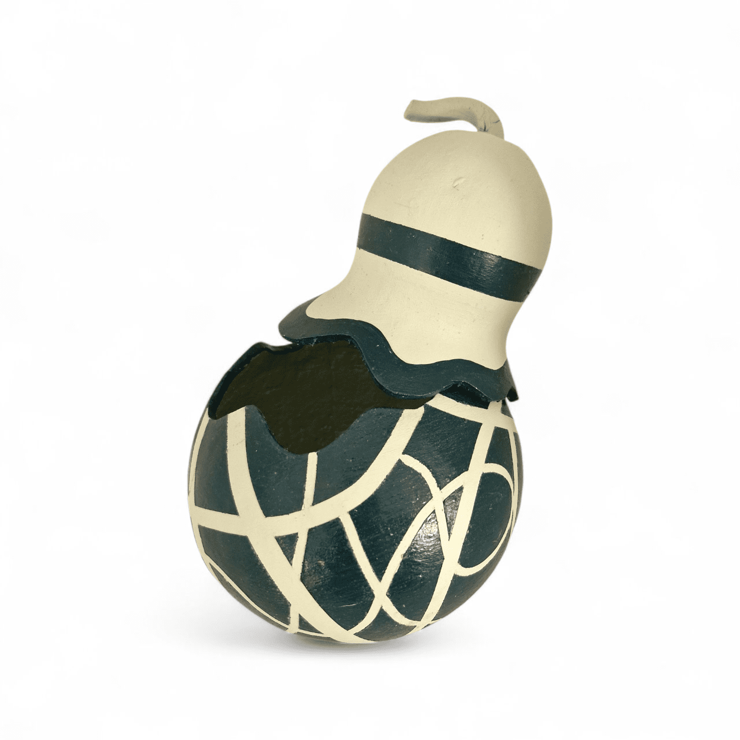 Jolie boîte en gourde-calebasse naturelle vidée, nettoyée, poncée, puis peinte à la main et vernie (vitrificateur mat et brillant).