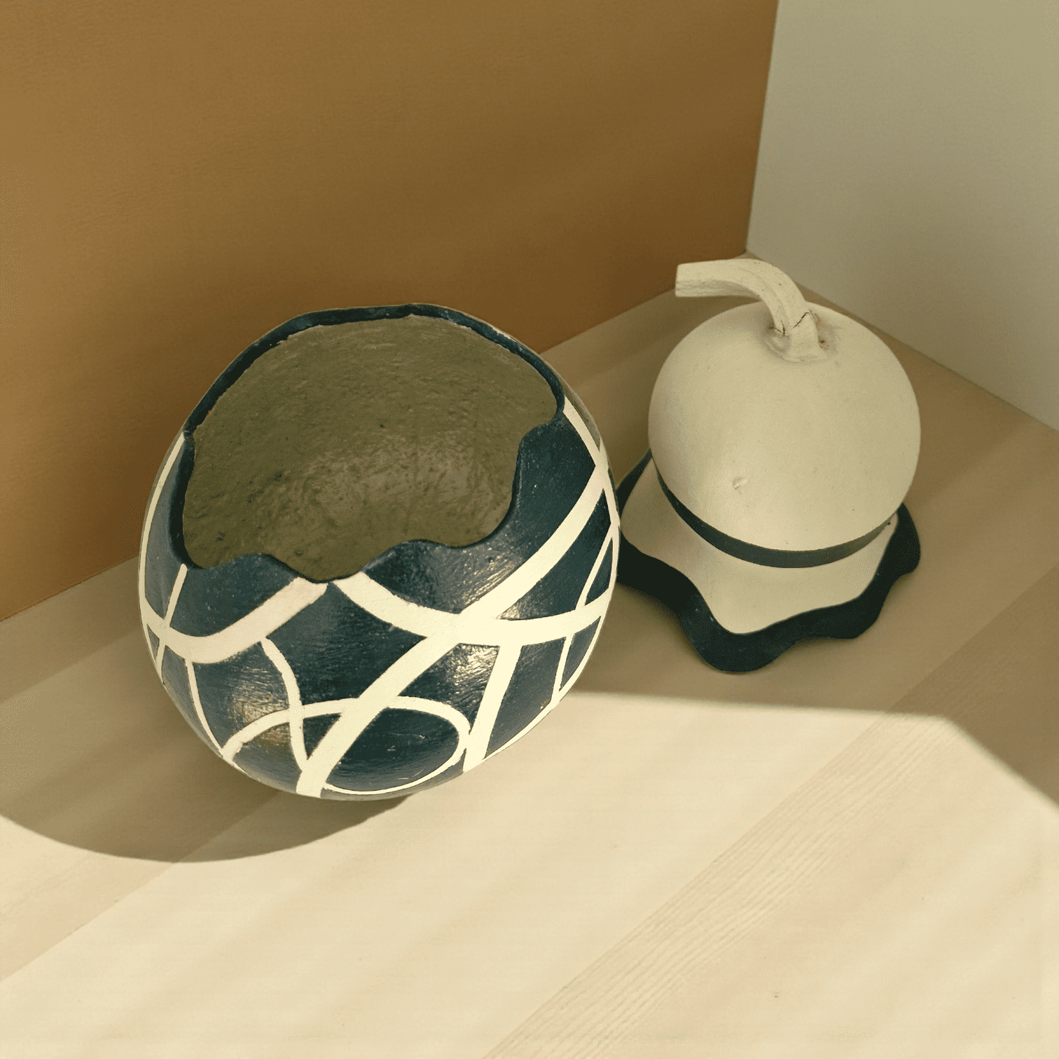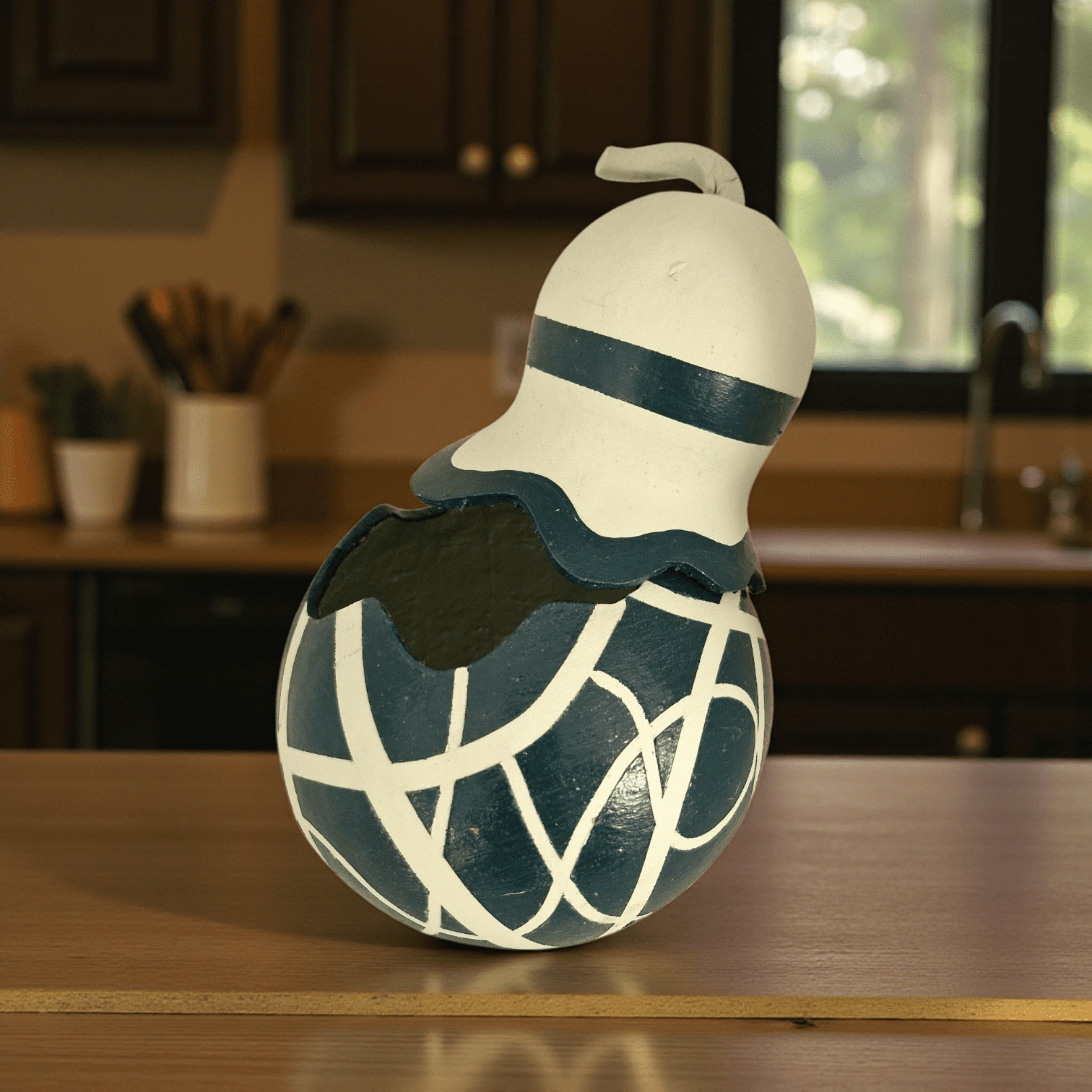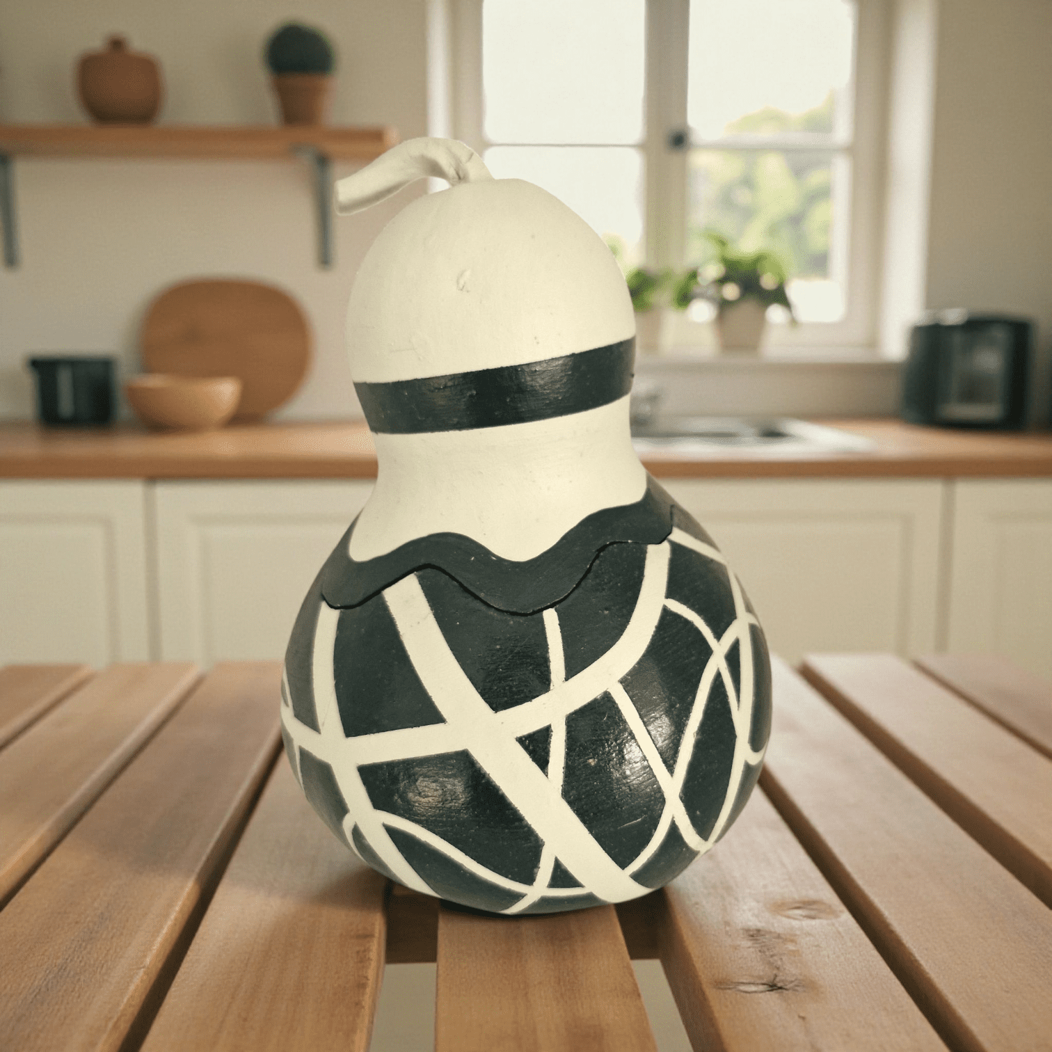 Jolie boîte en gourde-calebasse naturelle vidée, nettoyée, poncée, puis peinte à la main et vernie (vitrificateur mat et brillant).
