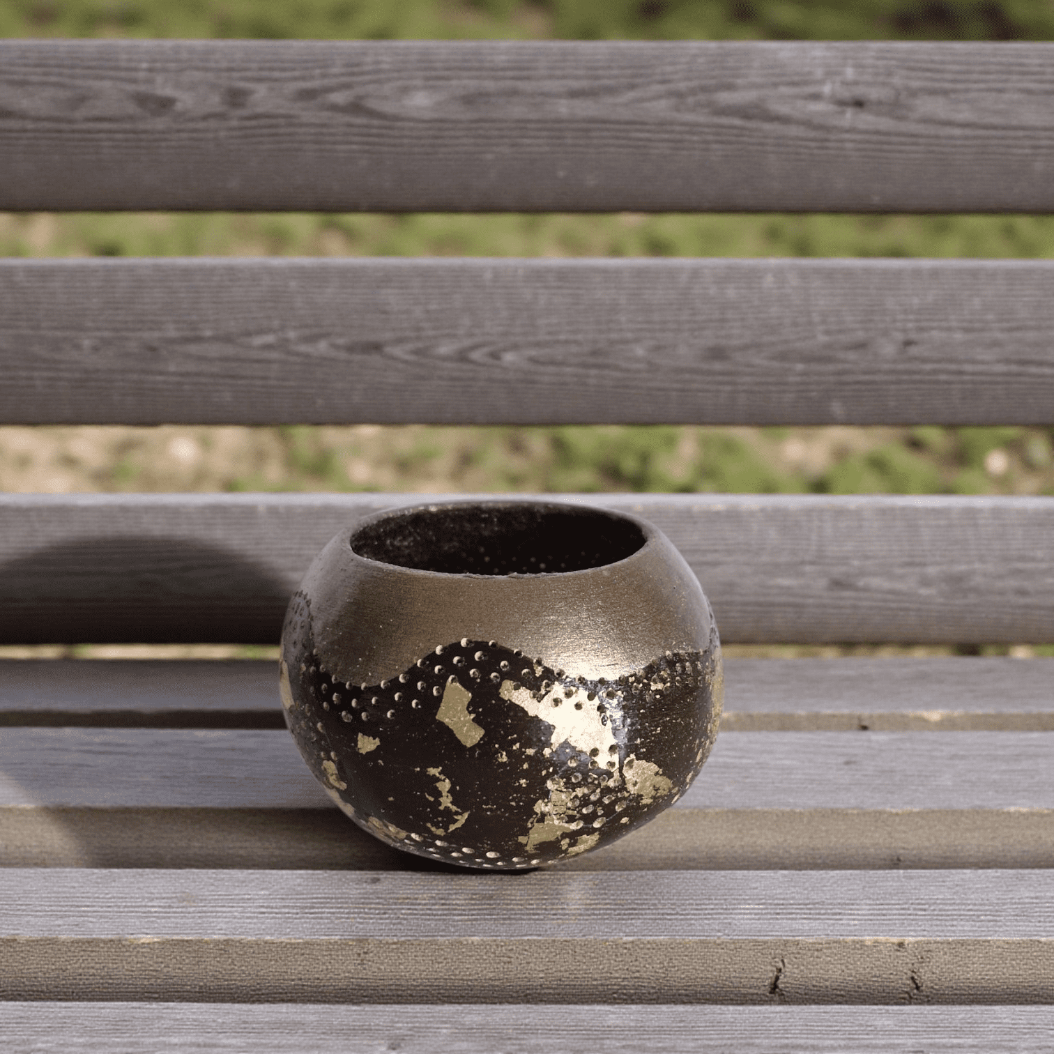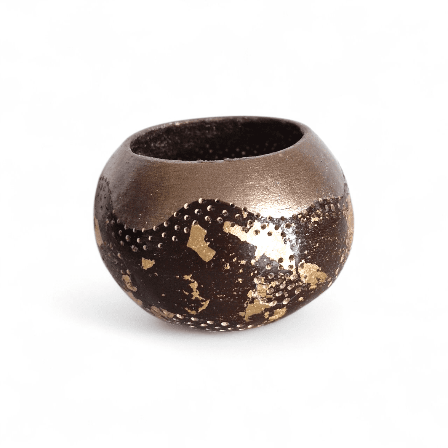 Photophore confectionné à la main à partir d'une gourde-calebasse naturelle vidée, nettoyée, peinte et vernie.