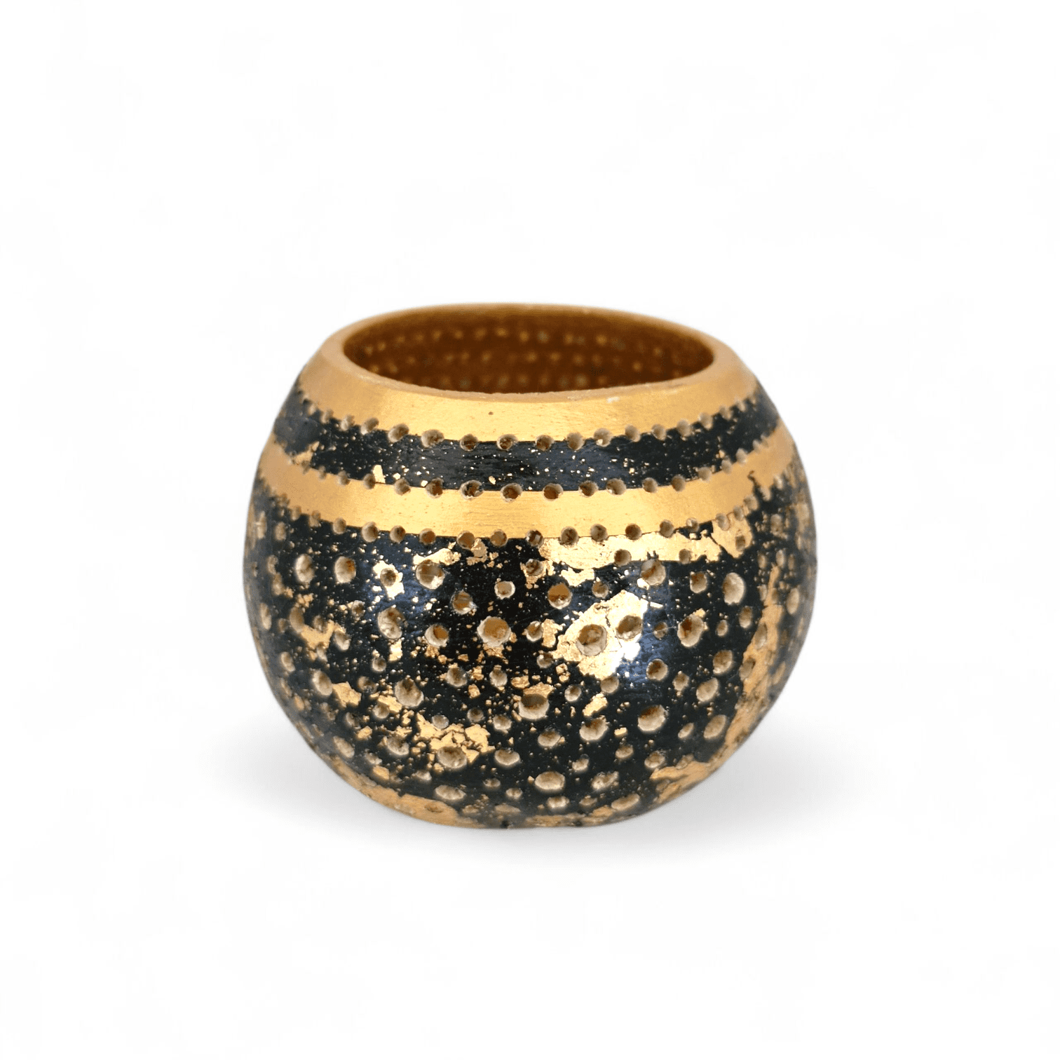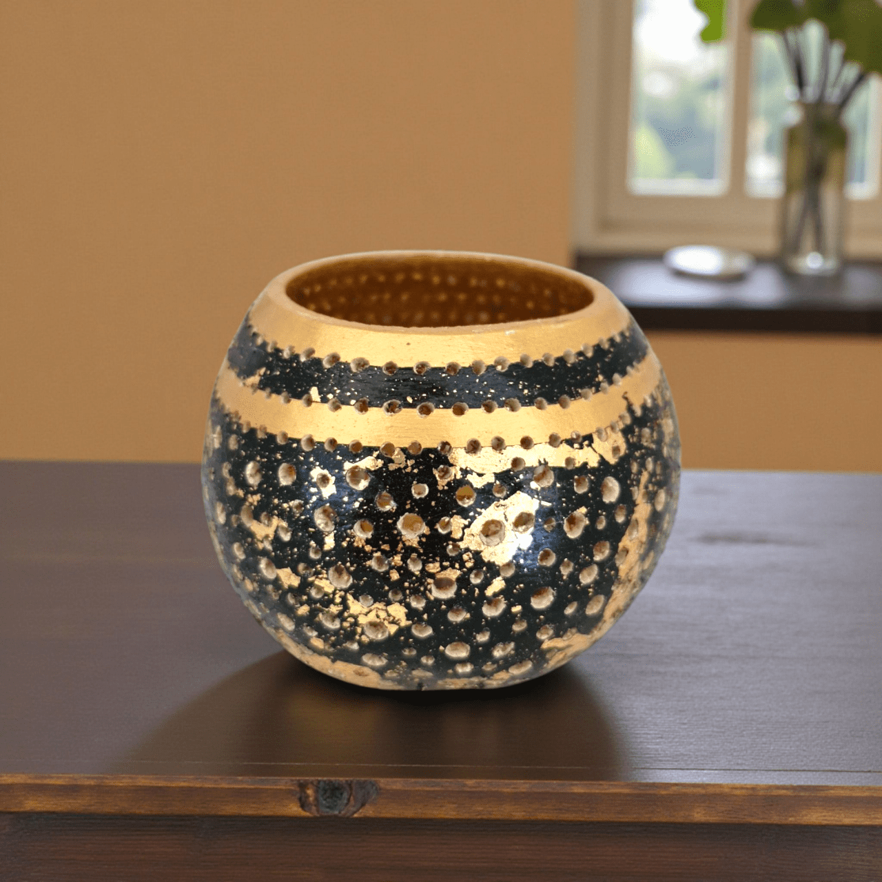 Photophore confectionné à la main à partir d'une gourde-calebasse naturelle vidée, nettoyée, peinte et vernie.