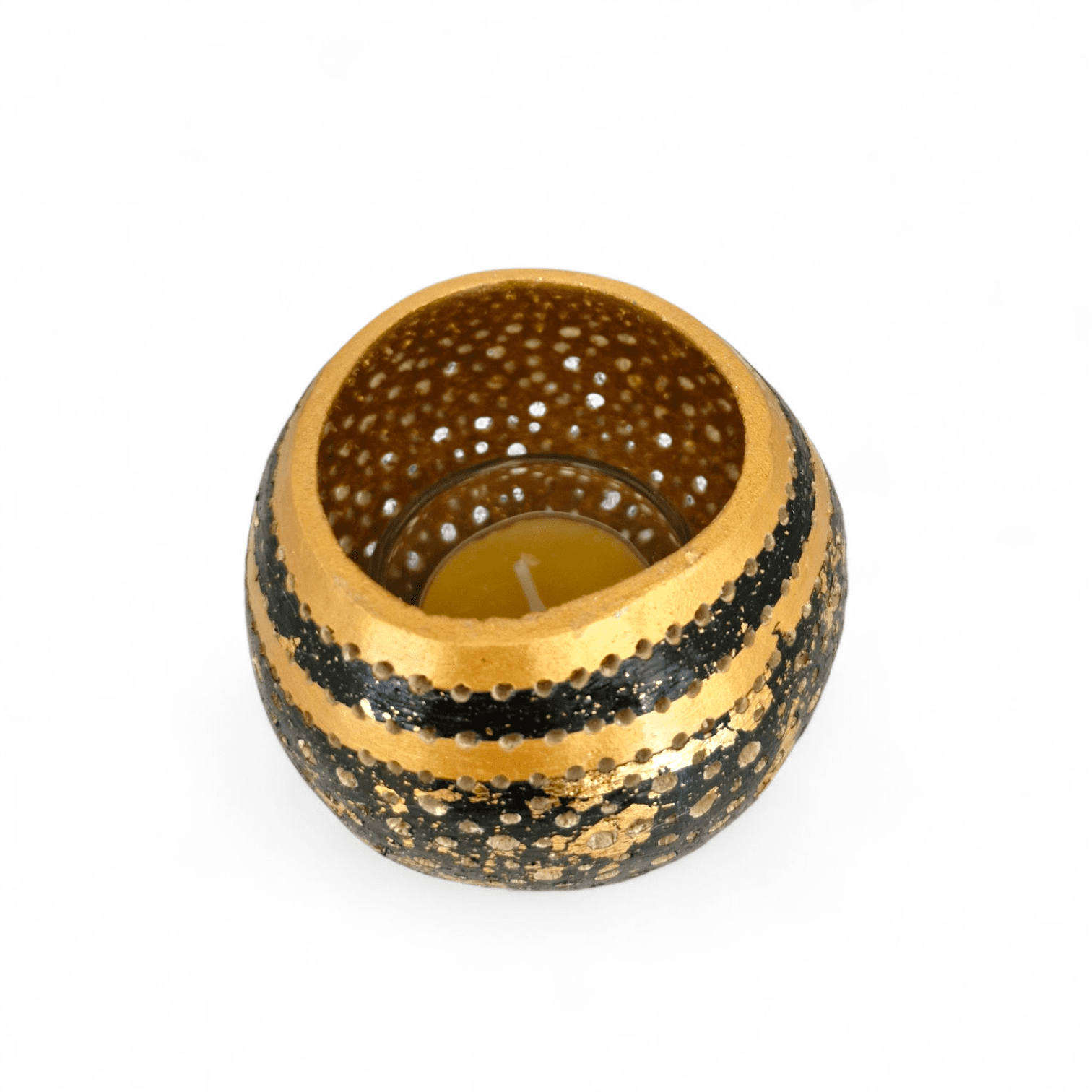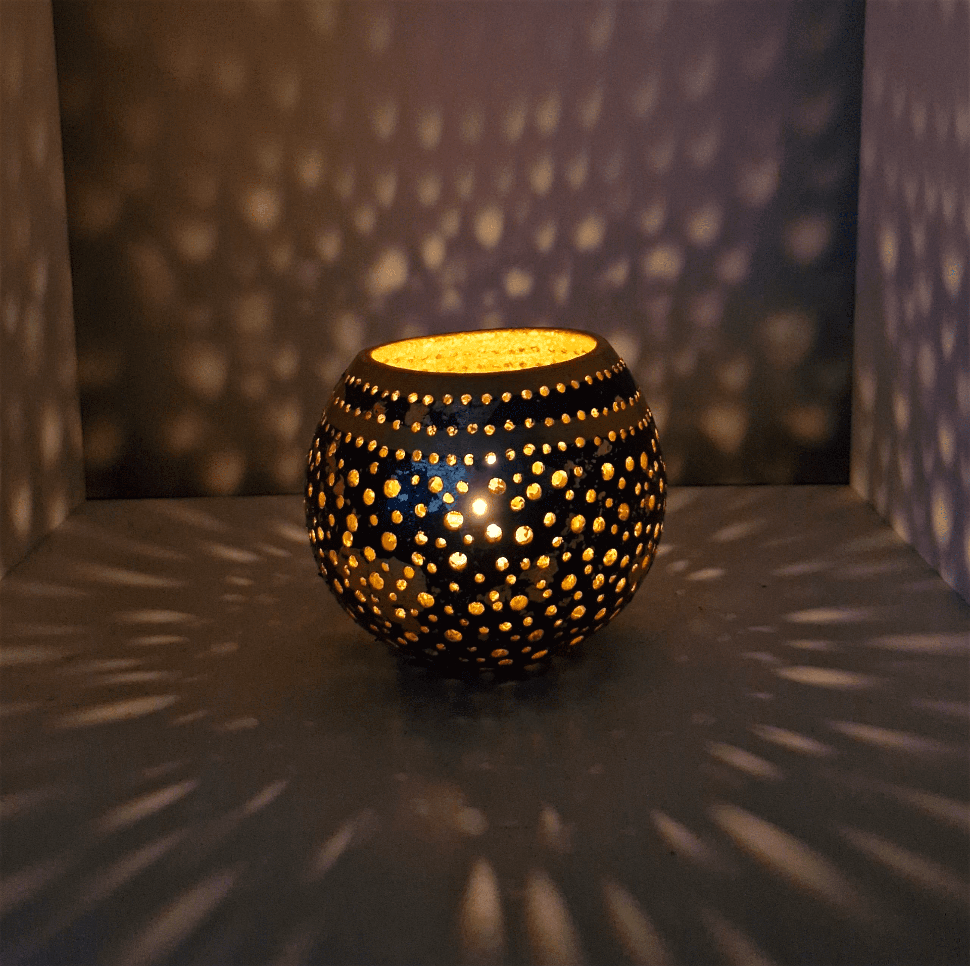 Les trous, percés un par un à l'aide d'une perceuse de précision, permettent à la lumière de la bougie de créer une ambiance douce et onirique.