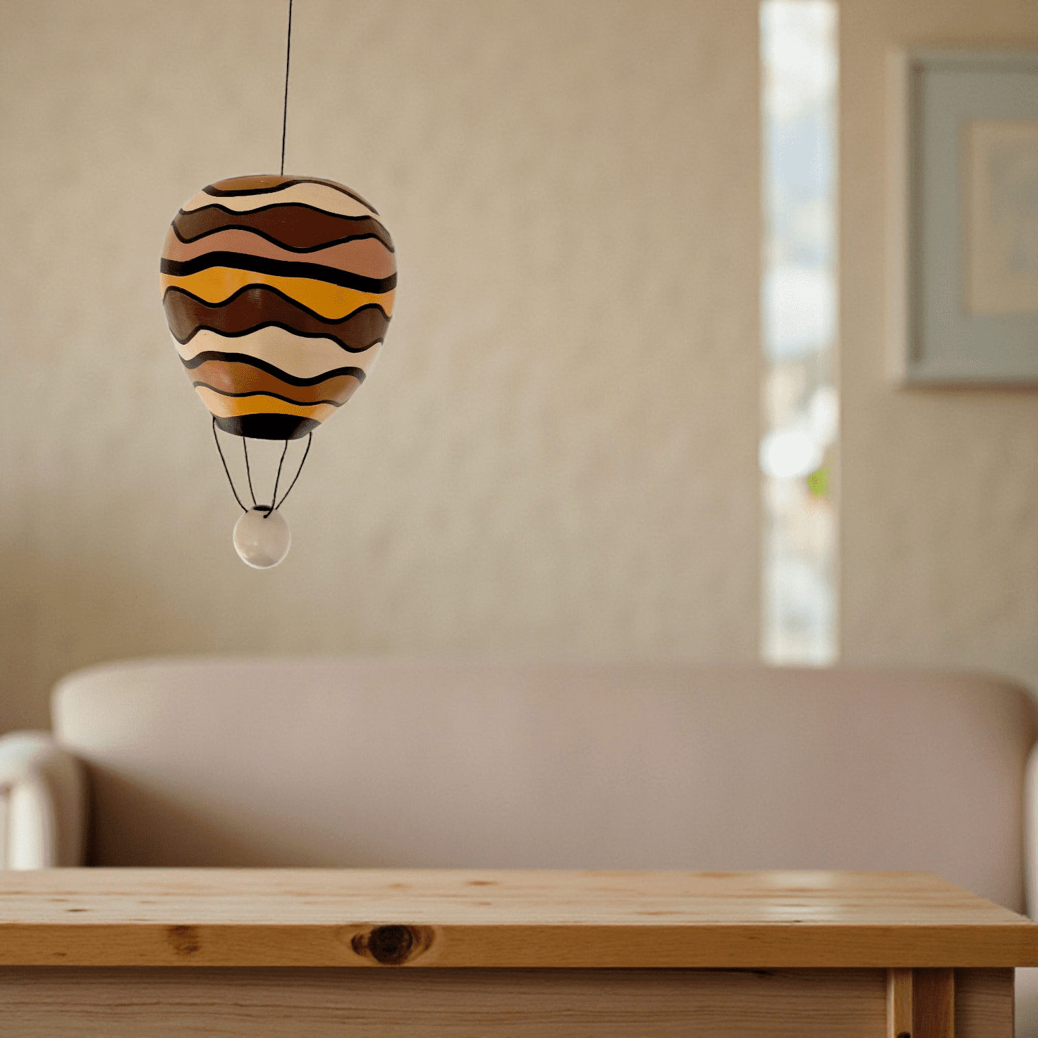 Légèreté et douceur pour ce mobile représentant une montgolfière! Idéal dans une chambre d'enfant, ou même dans un salon!