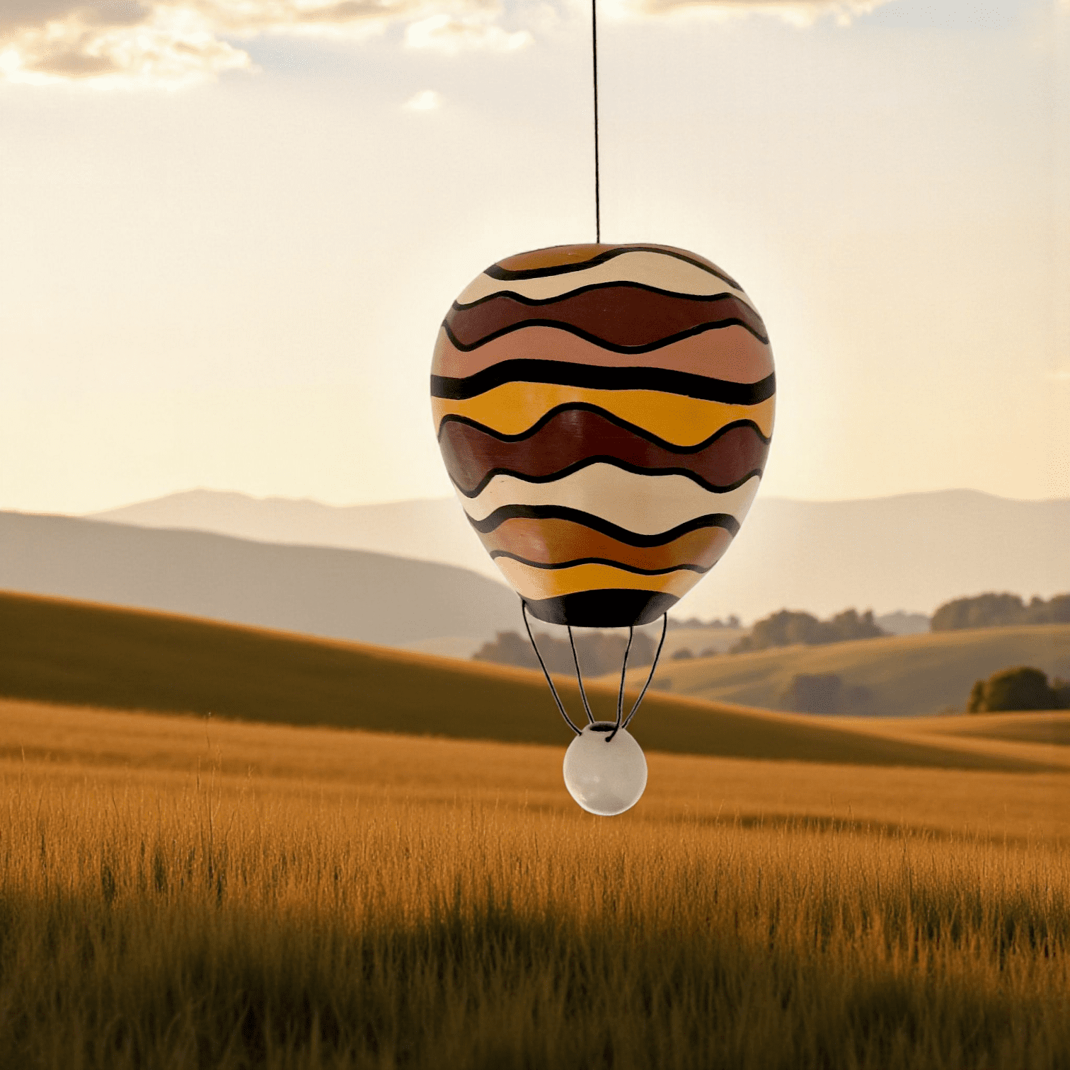 Entièrement fabriqué à la main à partir d'une gourde-calebasse vidée, nettoyée, poncée puis peinte et vernie.