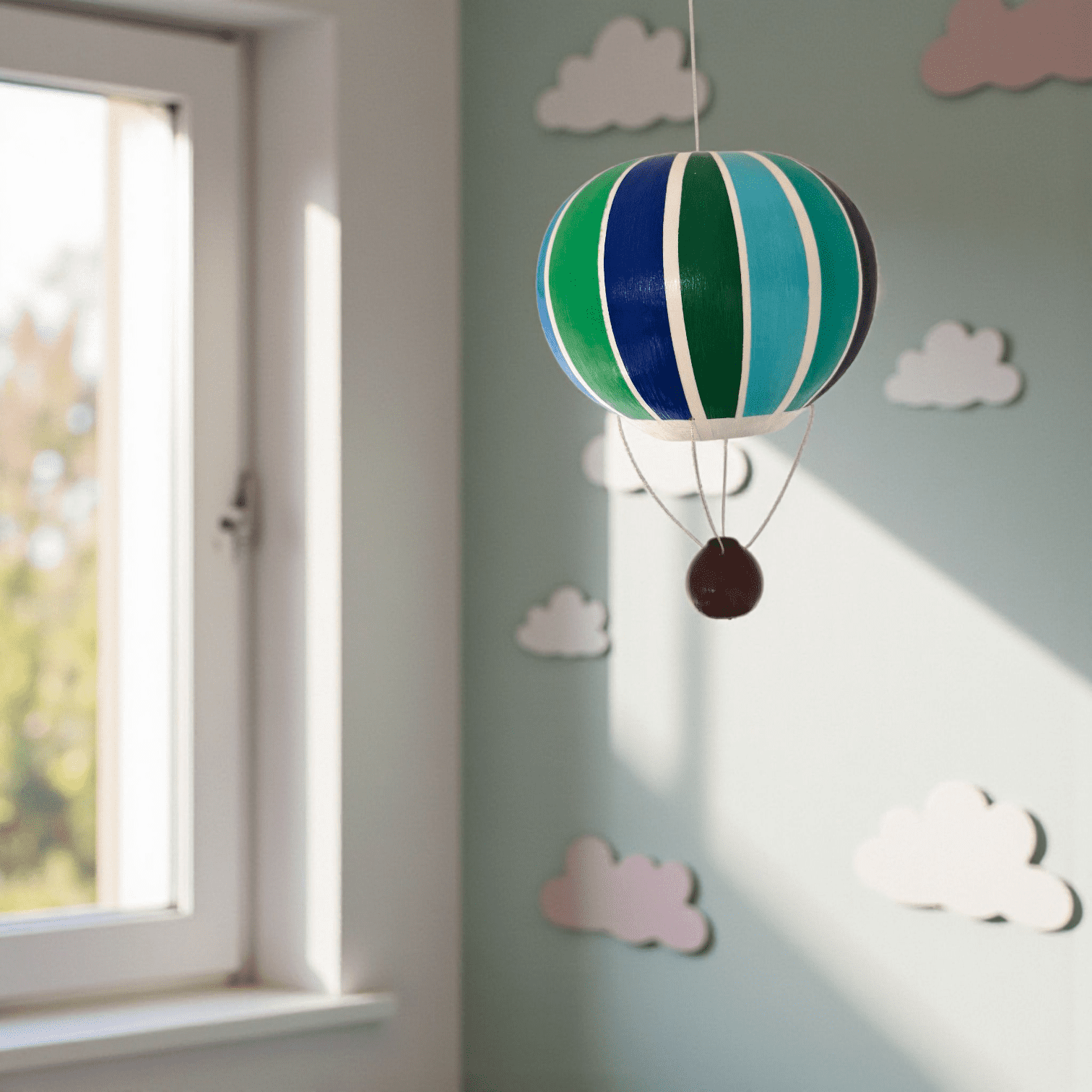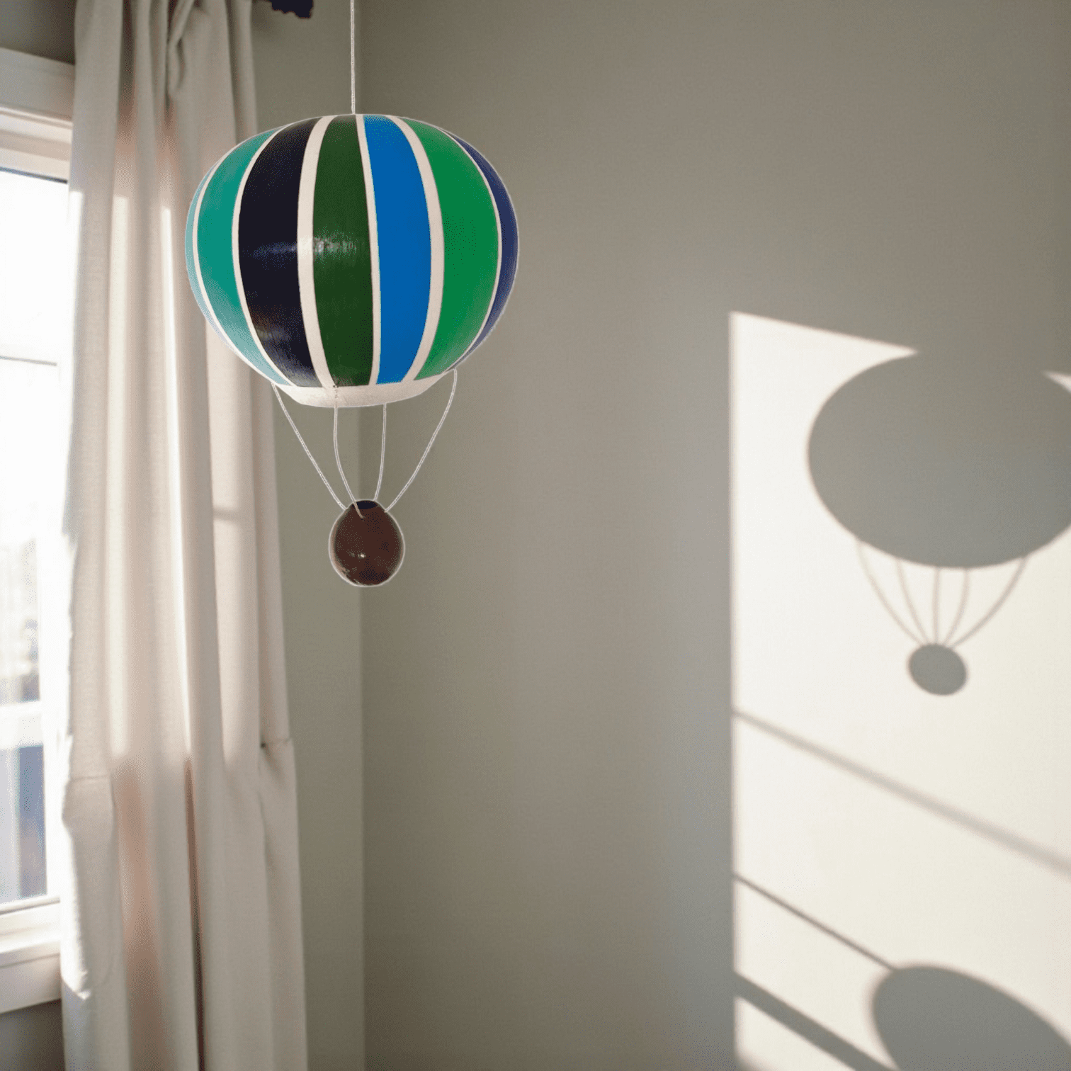 Légèreté et douceur pour ce mobile représentant une montgolfière! Idéal dans une chambre d'enfant, ou même dans un salon!