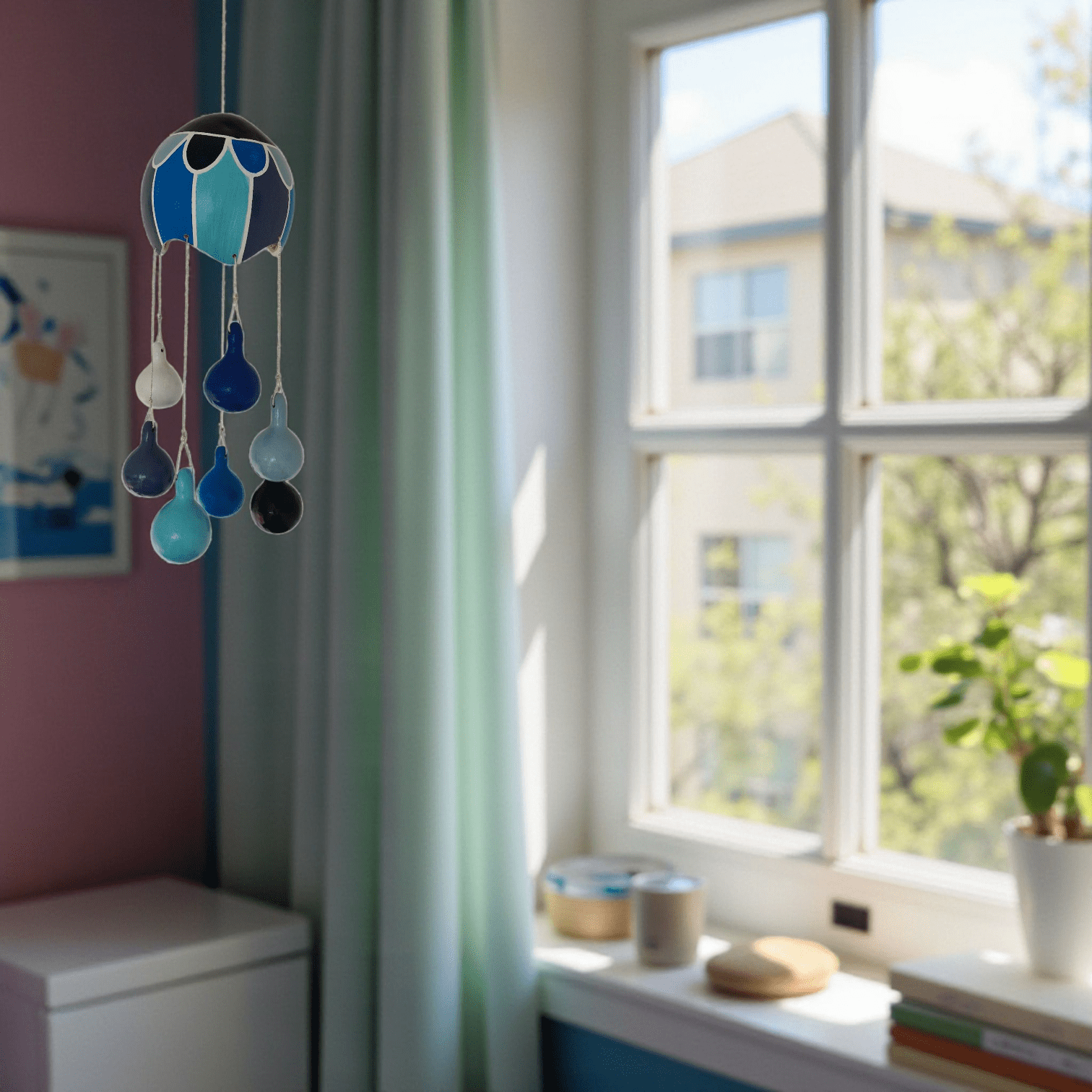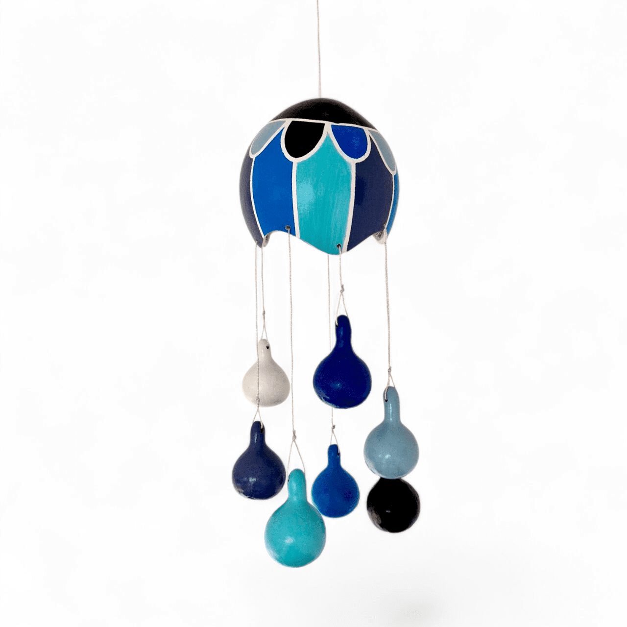 Entièrement fabriqué à la main à partir de plusieurs gourdes-calebasses vidées, nettoyées, poncées puis peintes et vernies.