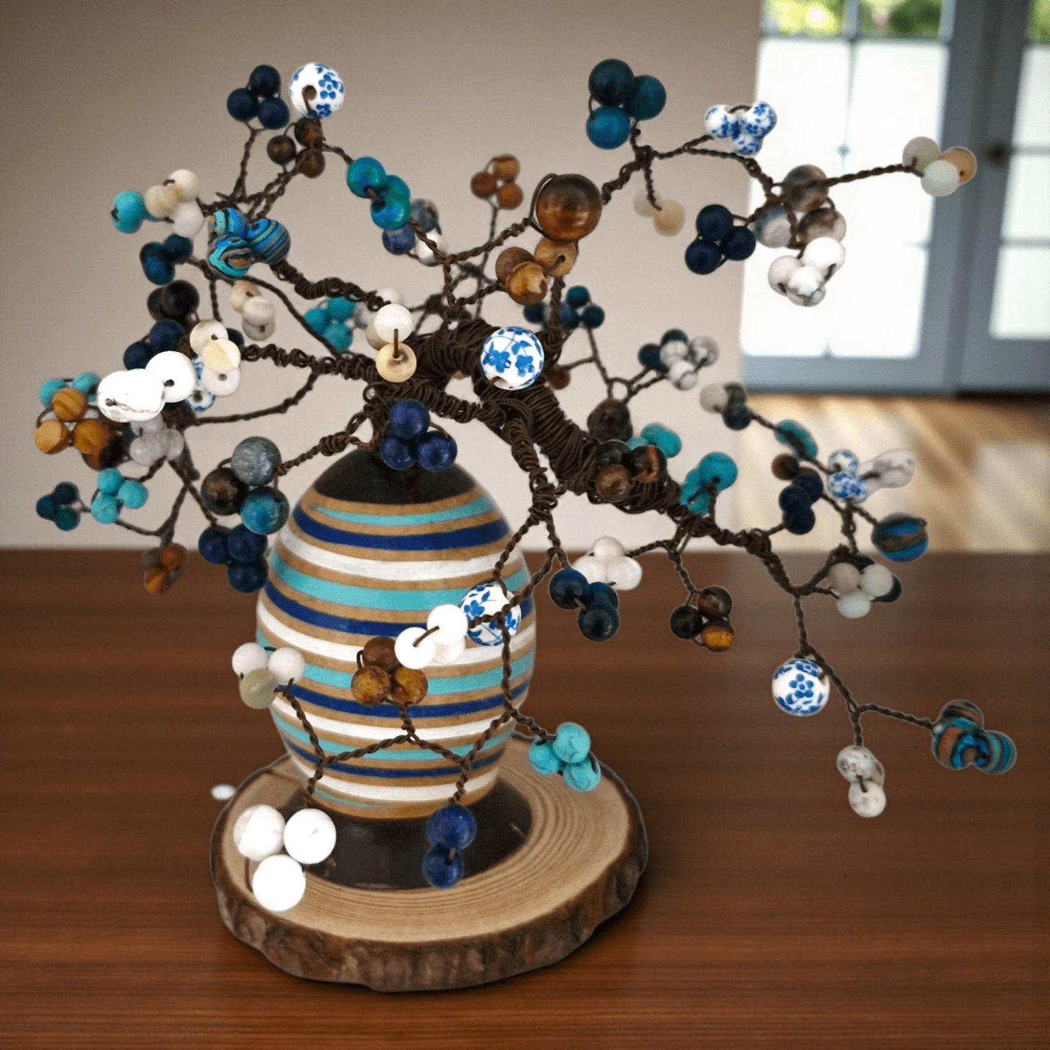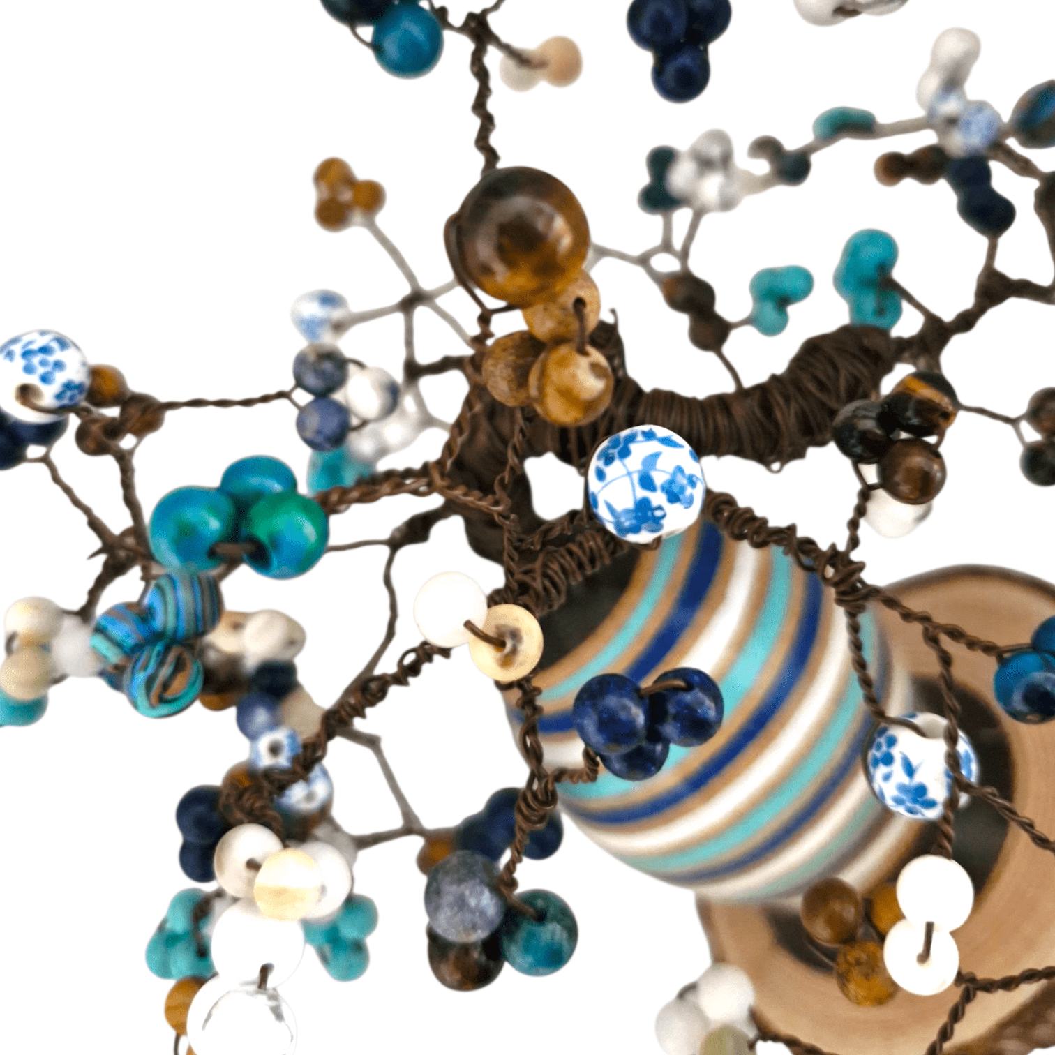 - Fleurs en perles (mélange de perles naturelles + perles en céramique)